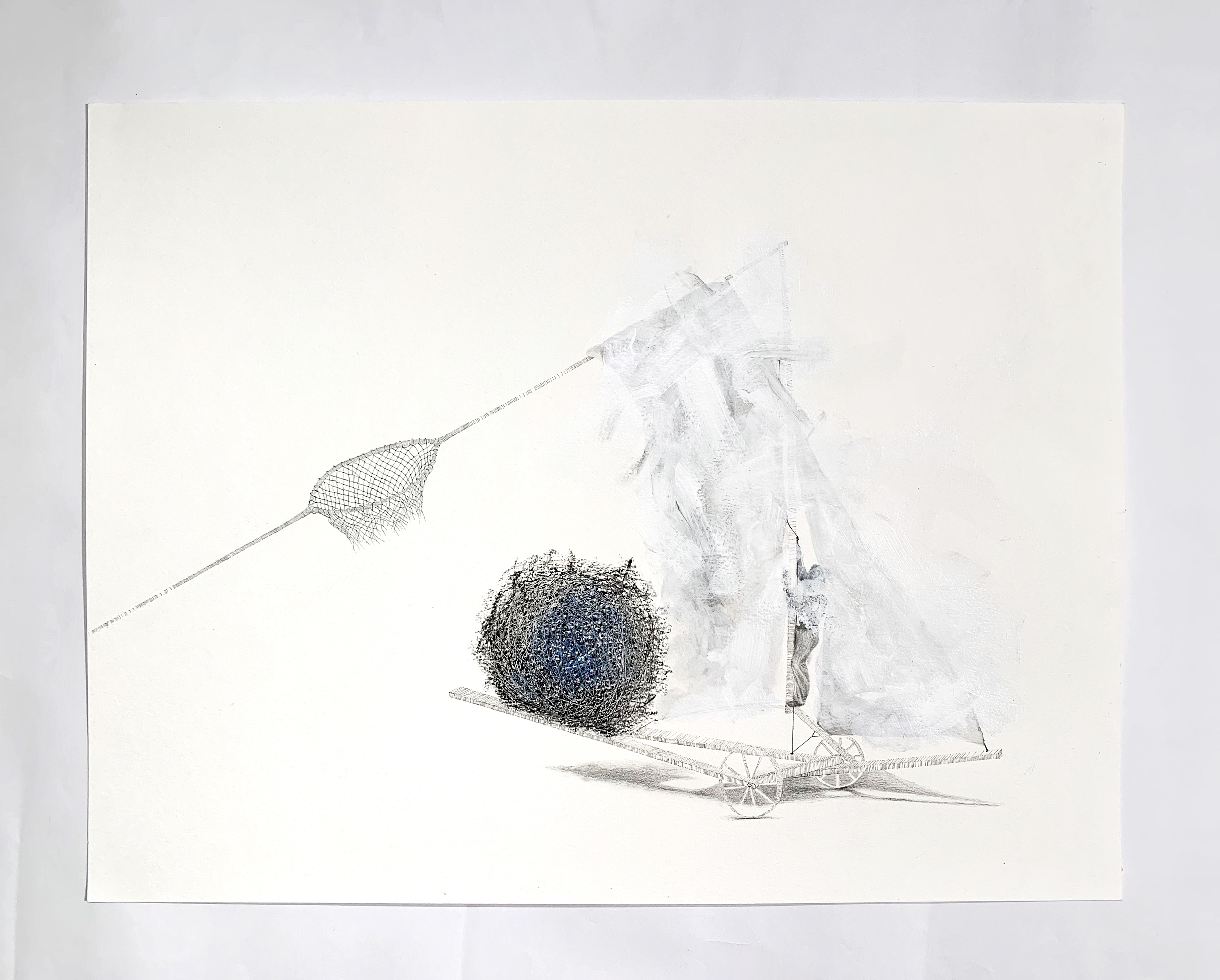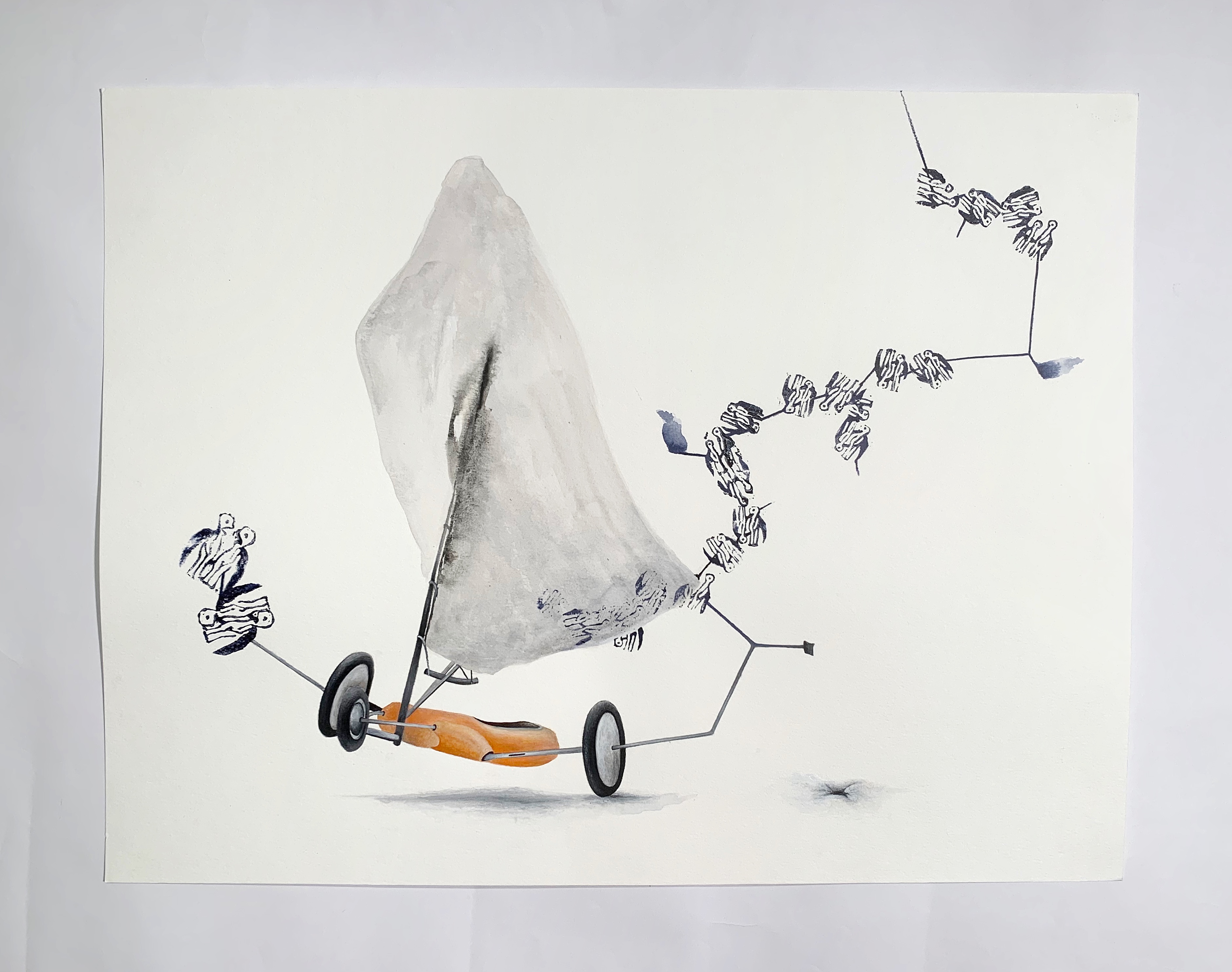 Acrylic, charcoal pencil and ink pen on paper