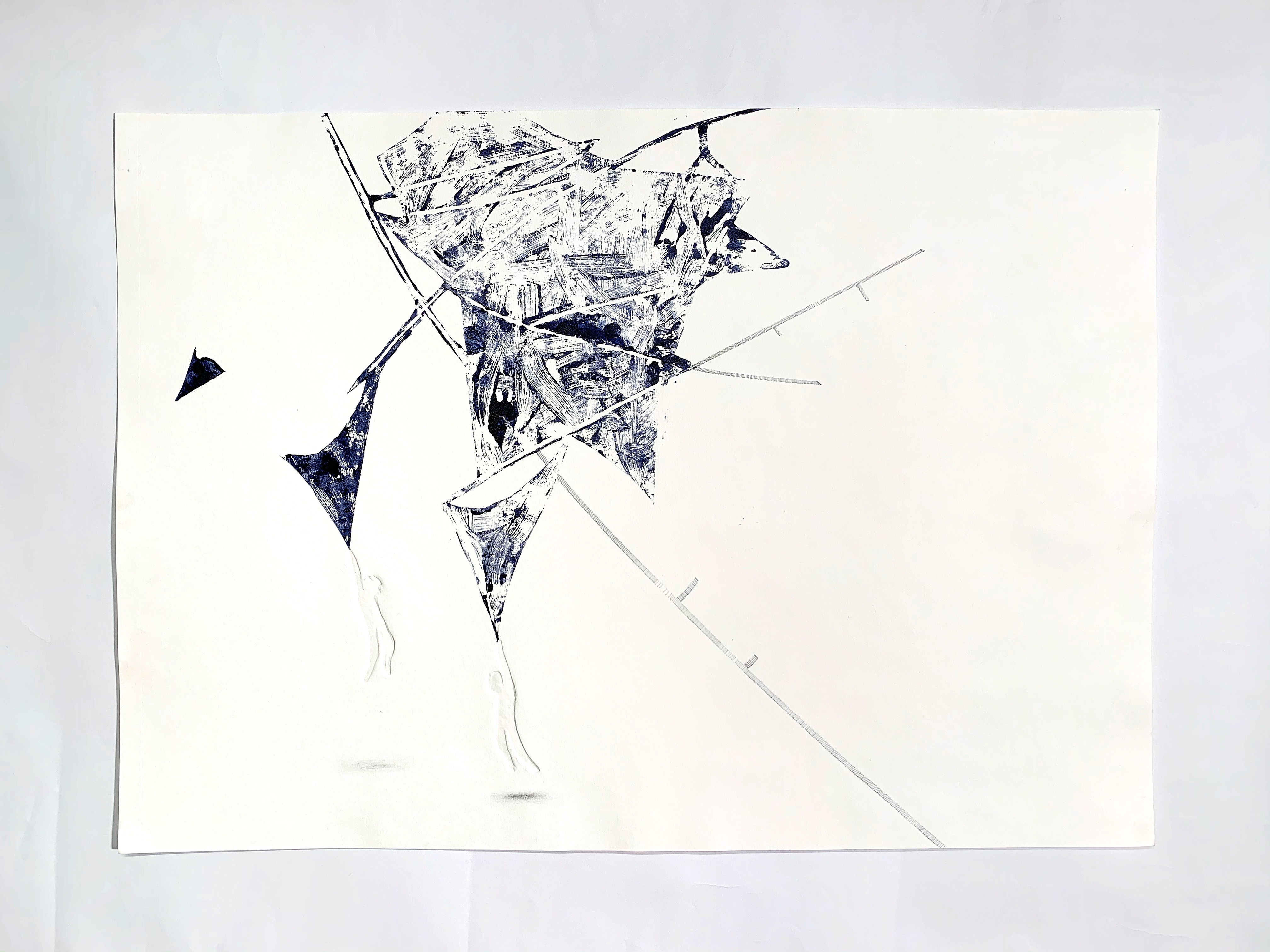 Charcoal pencil, Linocut and ink pen on paper